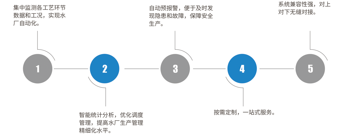 系统适用于供水企业远程控制管理水厂,水厂操作人员可以在水厂控制室远程监测厂内水池水位、进厂流量、出厂流量、出厂压力、水质等信息;远程监测加压泵组、配电设备及其他自动化设备的工作情况;可以远程控制加压泵站的启停,最终实现无人值守。